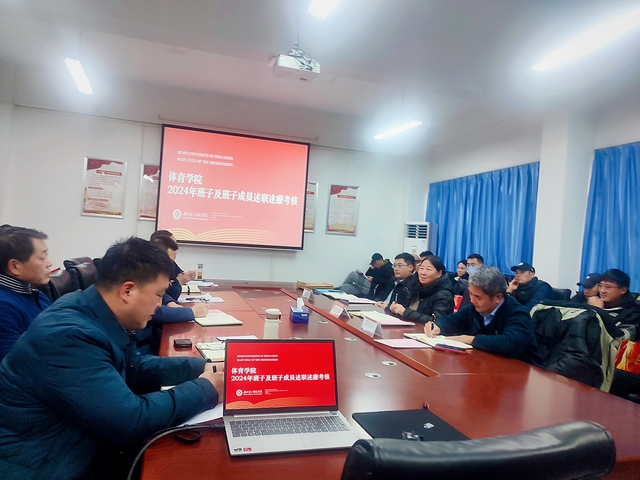 李小兵代表体育学院领导班子对2024年的各项工作、取得的各项实绩、党风廉政建设等及存在的不足进行述职,随后学院领导班子成员分别围绕“政治表现、履职情况、工作实绩、党风廉政情况、存在的不足及改进措施”等方面作个人述职述廉汇报。