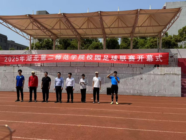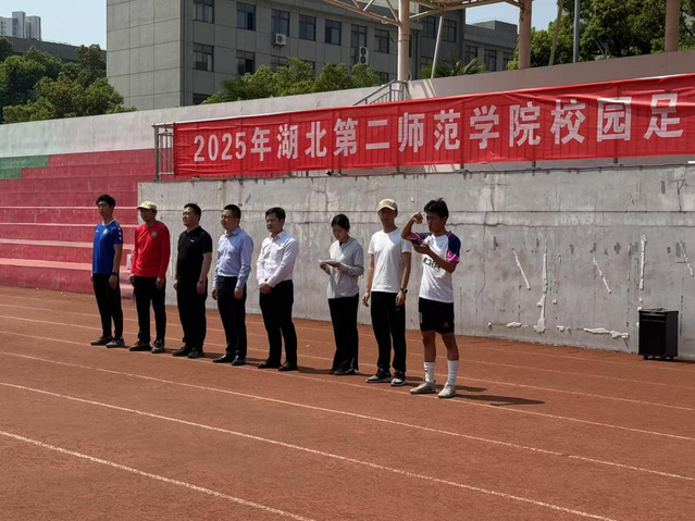 本网讯(通讯员秦鑫海)为促进我校体育运动发展,提升学生参加体育运动积极性,丰富校园体育文化活动。近日,学校在综合田径场举办2025年湖北第二师范学院足球联赛开幕式。体育学院党总支书记李小兵、党总支副书记将作栋、副院长尹开宁出席开幕式。