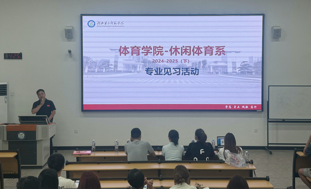 本网讯(通讯员刘煜)2025年6月18日下午,体育学院休闲体育系邀请了广州博润体育科技有限公司赛事运营部总监段欣,于博雅楼620教室举办了2024-2025学年第二学期休闲体育专业见习活动。体育学院副院长尹开宁,休闲体育系专业负责人蒋志伟,系副主任刘煜,2022级和2023级休闲体育专业全体学生参与。
