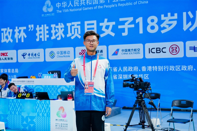 本网讯(通讯员 向琴英)近日,中华人民共和国第十五届全国运动会在广州隆重开幕。作为我国规格最高、规模最大、水平最高的综合性体育盛会,全运会的裁判与技术官员团队备受瞩目。学院黄亚飞副教授、王天雨教师凭借精湛业务能力与丰富临场经验,成功入选本届全运会技术团队,分别担任田径项目发令协调员和女子排球U18组别技术官员,在全国顶级体育舞台上展现二师风采。