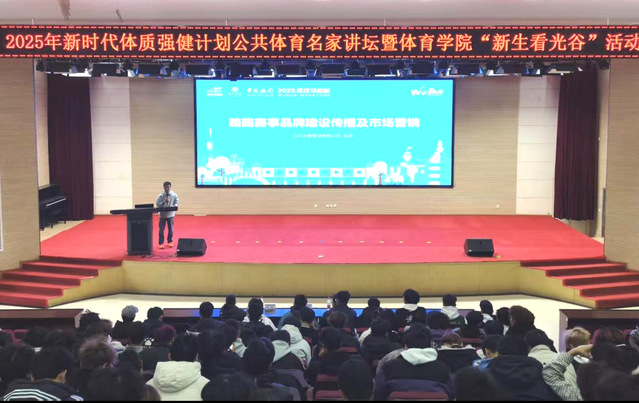 本网讯(通讯员 王晓宇)为深入贯彻落实体质强健计划,营造积极健康的校园体育文化氛围,拓宽学生专业视野,11月20日下午,体育学院“新生看光谷”实践教育活动暨首期公共体育名家讲坛在学校图书馆二号报告厅举行。国内马拉松赛事运营专家、汉马公司总经理包波受邀主讲,体育学院党总支领导、公体室教师代表与2025级、2024级学生共同参与。