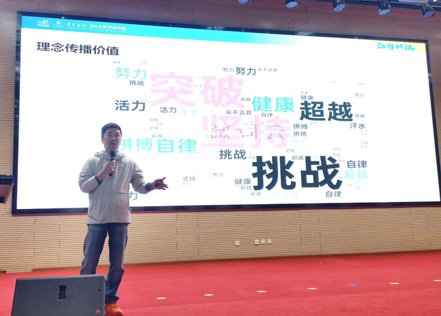 现场通过“突破、坚持、挑战、超越”关键词云,生动传递路跑运动“健康活力、拼搏自律”的精神底色,让新生直观感受体育赛事的文化张力。包波还指出,汉马不仅是体育赛事,更是武汉的“移动名片”——既塑造城市精神、激活文旅经济,又依托城市历史底蕴与现代活力,成为国内路跑领域标杆IP,深刻诠释了城市与赛事的双向赋能。
