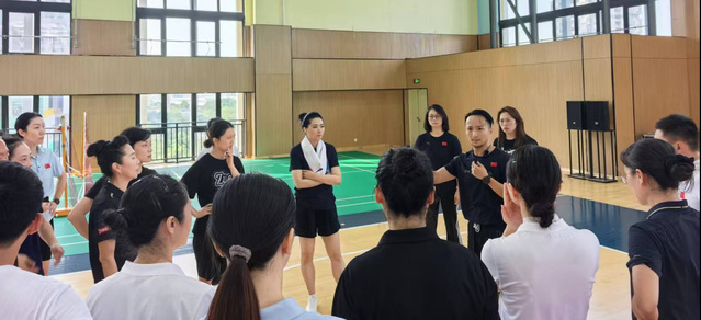 我校体育学院青年教师刘煜作为湖北队核心成员,在赛前一周全面负责队伍的热身准备、肌肉激活与情绪调动等训练计划制定。他创新性地将日常教学中的“功能性训练”与“心理状态调控”融入赛前训练——通过模拟课堂上的动态拉伸与核心肌群激活环节提升队员身体状态。结合课程中“团队协作意识培养”的教学方法强化队伍默契度。 “将课堂上的‘分解动作教学’转化为赛前的‘模块化训练’,用学生熟悉的‘分段演练’模式调动情绪,提升队员们的动作完成度和表现力。”