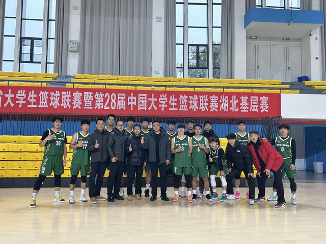 本网讯 在2025年湖北省大学生篮球联赛暨第28届CUBA湖北基层赛中,我院男子篮球队在邱希、姚威、贺小龙三位老师带领下,奋勇拼搏,最终夺得一级联赛乙组第四名,创下近年最佳战绩。