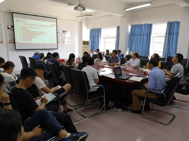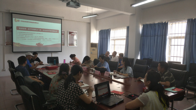 本网讯 2019年5月23日,体育学院教师第一支部主题党日活动在体育学院二楼会议室举行,本次党日活动的主题是:重温入党誓词和党章,学习《中国共产党纪律处分条例》,专题讨论。本次主题党日活动活动分两部分进行:第一部分由张绍明书记主持,体育学院党总支与科研处支部联合举行,一起重温入党誓词、党章和集中学习相关文件及讲话;第二部分支部学习,第一支部由支部书记王丹同志讲党课《中国共产党纪律处分条例》并进行专题讨论。