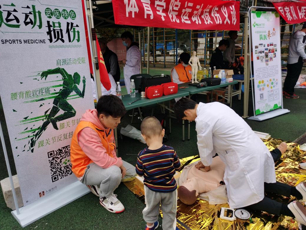 本次2021年11月4日,我校如期举行全校运动会,此次运动会上,我校体育学院医体结合创新创业小组联合武医世家中国国家运动队队医为本次运动会的紧急受伤事件做保驾护航。